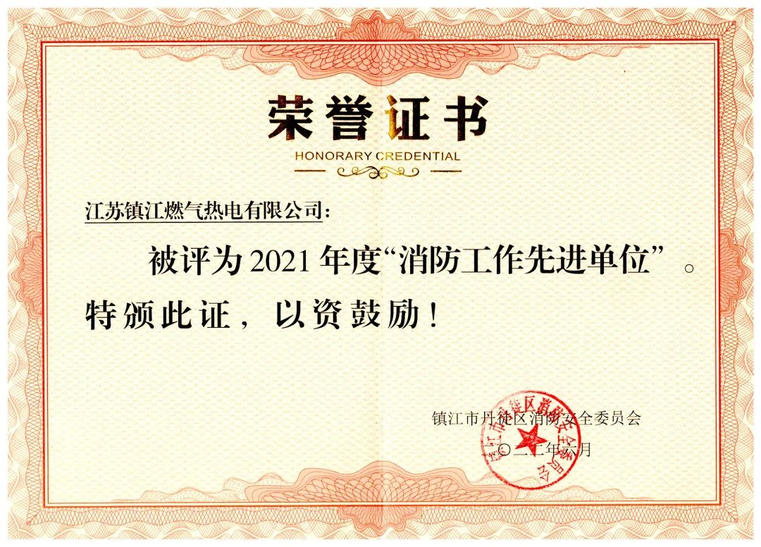 2022年6月,我司荣获丹徒区“2021年度消防工作先进单位